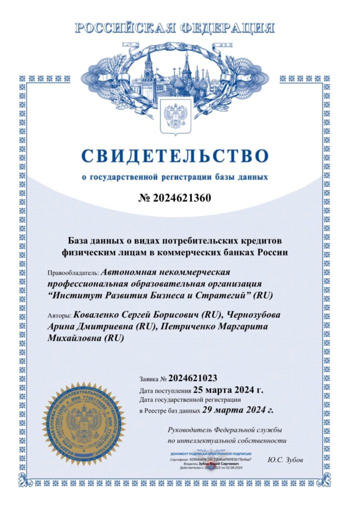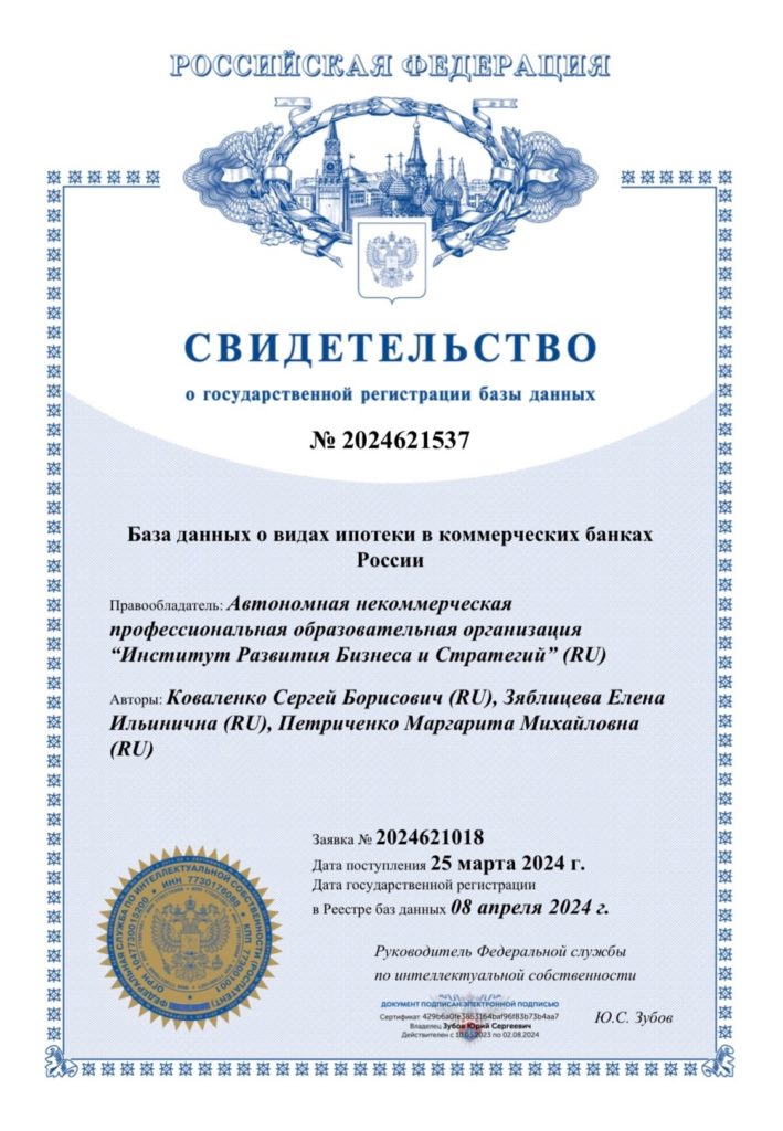 Сразу три свидетельства о государственной регистрации базы данных получили научные коллективы Института Развития Бизнеса и Стратегий.