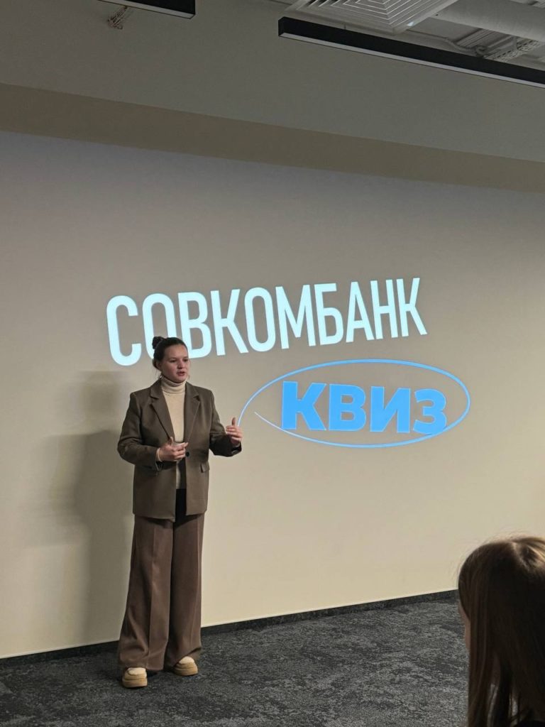Вторая часть экскурсии была связана с деловыми играми. Сотрудники банка провели для студентов квизы, предложили поиграть в игру «Крокодил». Вопросы были связаны с банковской тематикой и деятельностью ПАО Совкомбанк. Наиболее активные студенты получили от банка подарки и приглашения на стажировки.